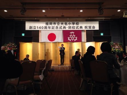 本日、ソラリアホテルにて開催された「140周年記念および閉校式典」に参加してきました。 参加者は全て大名小の卒業生や先生達で何と500名!! はるばる鹿児島から来たという方もいて、終始とても盛り上がってました。 「大名小がなくなるのは寂しいけど、こうやって集えたのは楽しいね」と皆、 とても良い表情をされてたのが印象的です。 また、会の途中で大名ユメバトンの紹介もしていただきました。 会場でも沢山の応援も頂いたので、しっかり頑張っていきたいと思います。
