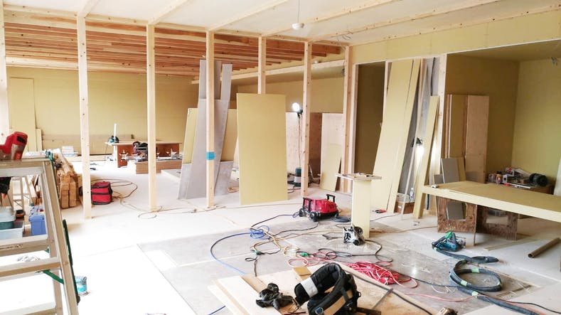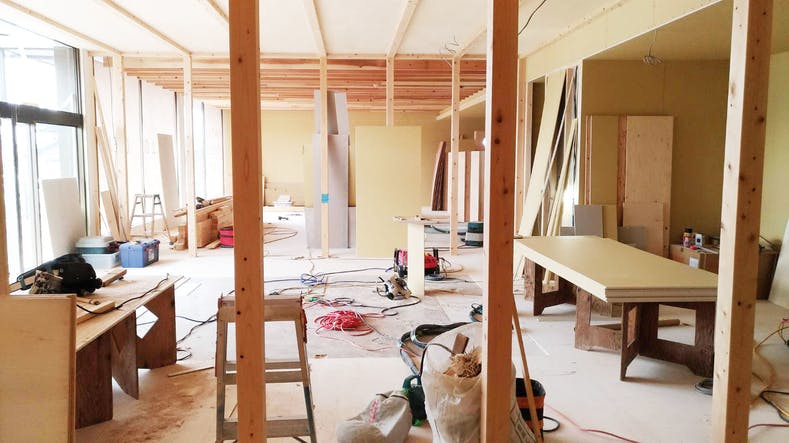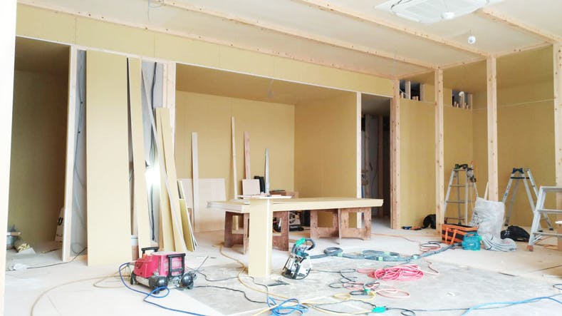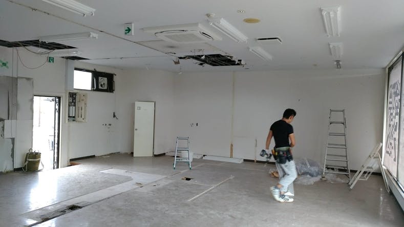 各スペースの仕切りの枠組みはもちろんのこと、天井の方もかわってきており1ヶ月前とは大きな変化がこのスペースの中で行われております。