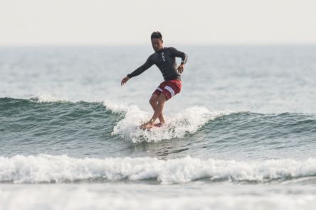 秋本 柔らかいですよね。海でも動きやすくてすごくラク。 このパンツ、海以外でも履けるからいいですよね。街で履いて、そのまま海に行けるし、その逆もいいかも。 錦田 それ理想だね。僕ね、そのくらいナチュラルなライフスタイルが宮崎には合うと思うんだよ。きっとそういうのを都会の人たちは憧れるんだろうしね。 秋本 確かに。せっかくこんなに素晴らしい場所で毎日を過ごせるんですもん。自分の好きなことを自分のスタイルで楽しめる方がいいです。 錦田 宮崎のファッションも宮崎らしいのがあってもいいよね。 秋本 いや、全然アリ。むしろそっちを打ち出して欲しいくらいです(笑)。 そしてそんな宮崎に遊びに来てくれる人たちが増えて、海も街も盛り上がればいいなって思います。 【秋本 祥平プロフィール】 プロサーファー。10歳でボディボードを始め、15歳でロングボードに転向。21歳でプロになり、現在は日本のみならず世界の大会に参戦。成績を残している。ホームグラウンドは木崎浜&加江田河口。1985年生まれ。