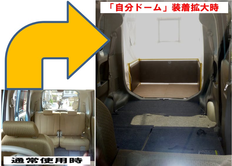 だから、普段から使っているマイカー内で過ごす事の出来る「自分ドーム」は、車内も見慣れた風景で、それにプライバシーも守れ周囲への気遣いを最小限にお過ごしいただけるものです。