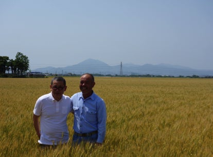 こんにちは!村岡です。 これまでずっと縁のなかったCMの撮影。 コマーシャルって、いったいどうやって作られていくのだろう? また、自分自身がつくった商品(プロダクト)がどんな姿になっていくのか?未知の世界であるコマーシャル撮影現場には、とても興味が湧いてきます。 九州パンケーキは、九州全県から全てトレーサビリティ可能な素材だけを集めて作られています。立場的にはクライアントである私ですが、生産地・農家さんへの取材依頼や折衝を含めて、できるだけ関わらせて頂くことになりました。 2013年5月20日 まずは小麦畑の風景をロケハン(現地調査)することとなり、今村さんとカメラマンの蓮井さんと共に熊本へ行きました。 撮影に最適な場所を見つけた時には、時に子供のようにキラキラと目が輝いて、なんとなくオトナの遠足のような雰囲気。 同い年の生産者さんと交流をして今村さんもなんだか楽しそうです。 一方で、お二人からはプロフェッショナルな仕事人がもつ独特の緊張感が感じられます。今村さんと蓮井さんは、ときにまるでハンターの様な目で撮影場所を探していきます。時折聞こえてくる専門用語にドキドキ…。 今回は、パンケーキにとってメインの素材である麦の生育を確認して、1年後の撮影に向けた最適なタイミングを見つけるという大切な作業。 九州パンケーキには、小麦をはじめとして、大麦、米、押し麦、もちきび等の様々な素材が入っていますから、これらの産地を追いかけるということは、季節を追いかけるということでもあります。 美しく黄金色に輝き、風に揺れる麦畑は、まさにこの地域の原風景です。ここで収穫された大地の恵みが、丁寧に製粉されて九州パンケーキになっていきます。あらためて、感謝と感動が湧いてきます。 再びこの地に戻ってくるのは1年後。 もちろんその間にも、全ての素材の育成を追いかけて撮影は続きます。 産地情報を全てオープンにして撮影するということは、その素材こそが生命線である「九州パンケーキ」そのものが"正直"でなくてはできないことだし、ご協力頂く産地の皆さんや生産者さんとの"信頼"も必要です。 こうして、オフコマーシャル×九州パンケーキの「九州」を駆け巡る旅が始まったのです!! 村岡浩司