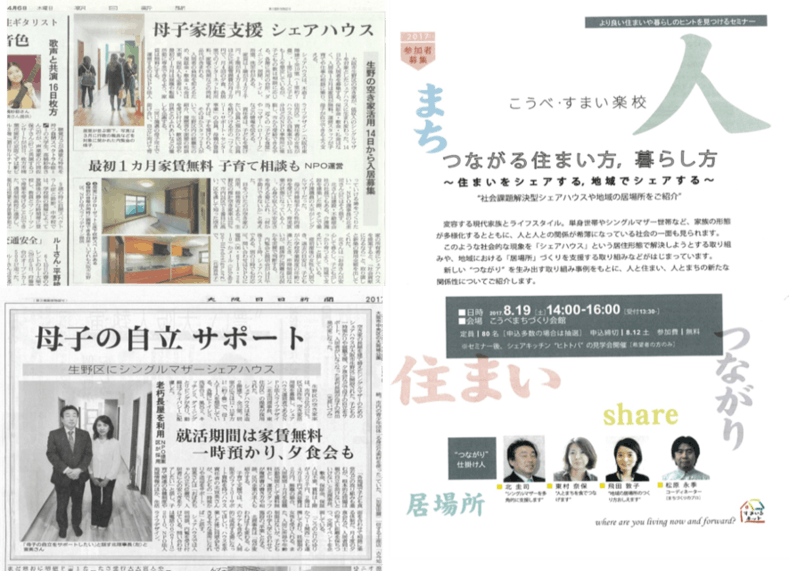 それだけでなく、シングルマザーの課題解決の新しい取り組み事例として、朝日新聞や関西テレビをはじめ、多くの報道機関にも取材していただき、8月19日には、神戸市の『すまいとまちの安心支援センター』主催の『すまい楽校』でセミナー講師を務めさせていただきました。