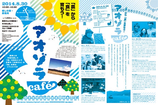 今回皆様にお願いしたいことは、8月30日(土)に開催する「アオゾラCafe」というイベントへのご協力です。「農作物の消費活動の主となるお母さん方」そして、「これからを担う子ども達」に農の魅力を伝えるために、皆様のお力をお借りしながらこの企画を開催したいと考えています。