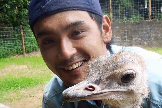 ▲古谷一紀さんとOstrich HAJIMEのダチョウ