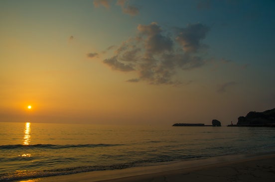 ▲夏はレジャースポットとして賑わう国府海水浴場。美しい夕日スポットとしても知られる