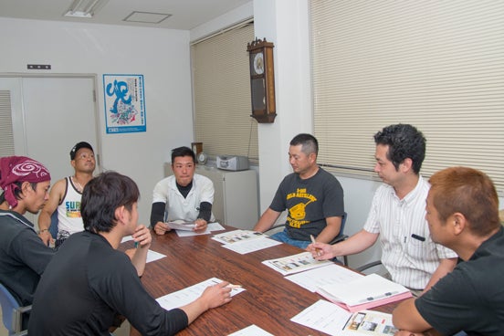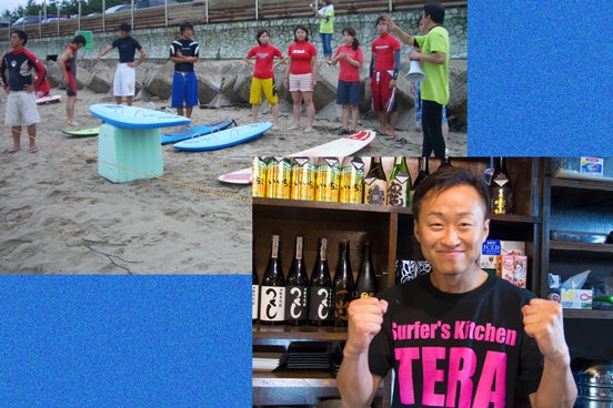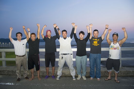▲当日、屋台で腕をふるうサーファー兼地元居酒屋経営寺本氏と地元サーファー達