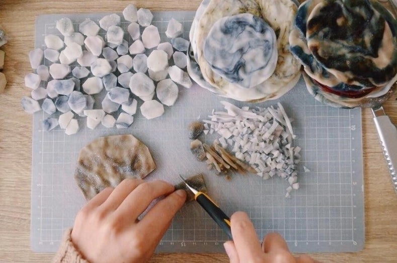 少しでもストレスフリーな、つけている感覚がないようなものは作れないか?と問い続け、6年間試行錯誤した結果、樹脂粘土によって自然にある石のような美しいデザインで、かつ軽量なアクセサリーを作ることに成功しました。
