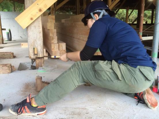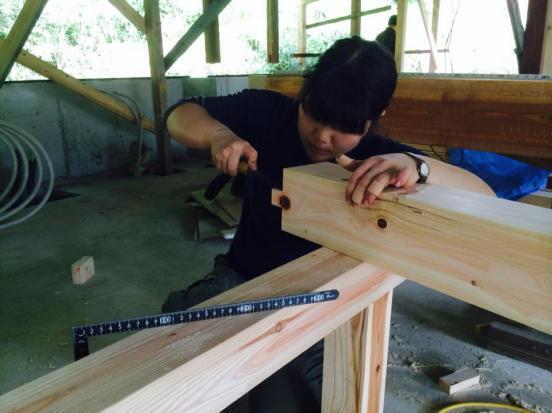 建物は、解体中に天井裏から出てきた藁を使って土壁を作ったり、ようびが得意とする木のものづくりでセルフビルドしています!西粟倉木匠塾も、この建物をきっかけに生まれました!木匠塾とは木造を学ぶ機会が少ない学生に、現場で作業を通じて、設計から施工のみならず、材料発注などの運営も含めた建築生産を学ぶプロジェクト。大島奈緒子が学生時代に情熱を注いだ多賀木匠塾のDNAを、西粟倉で引き継ぎました。