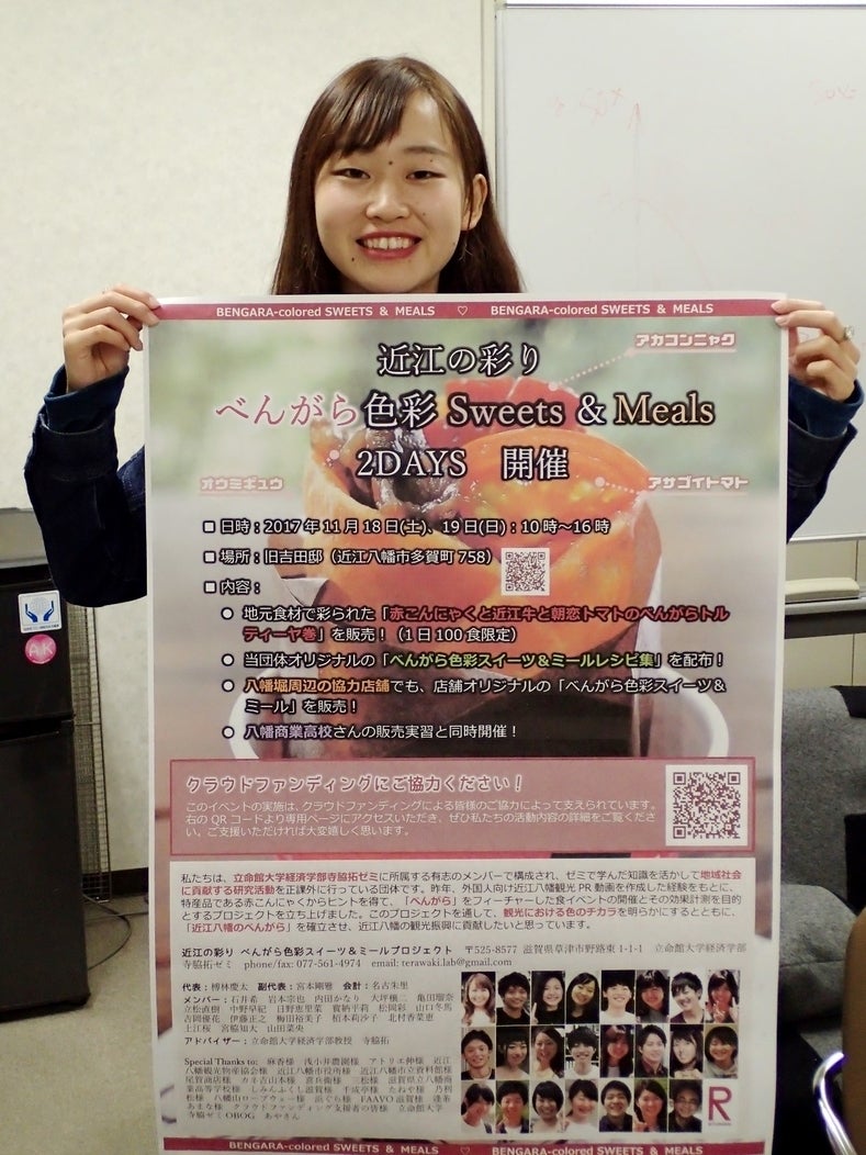 はじめまして。会計の名古朱里です。 本日もお昼休みにプロジェクトの会議を行いました!11月のイベントで販売する「赤こんにゃくと近江牛と朝恋トマトのべんがらトルティーヤ巻き」の試作日も決定し、順調に進んでいます。 また、クラウドファンディングを始めて約1週間、皆様のご支援により32%を達成致しました。ありがとうございます。 近江八幡を盛り上げるイベントにできるよう活動していきます。 引き続きご支援よろしくお願いいたします!