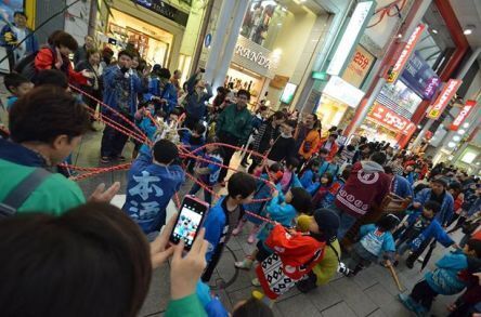 「いのこ、いのこ、いのこもちついて、 繁盛せい、繁盛せい……」 こどもたちが,白い息を吐きながら亥の子石をついて廻り巡る広島の亥の子祭り。 亥の子自体の歴史は古くて,平安時代からあったそうです。 元々,中国で無病息災を願うものだったのが, 猪の多産にあやかって,収穫の祝いや子孫繁栄を願う意味合いが加わったとのこと。 また,石をつくのは,荒ぶる神々である「亥の子大明神」をなだめる意味合いがあるそうです。 自然への畏敬の念。 亥の子の根底にあるものです。 人間も生き物。自然の中の存在です。 コンクリートに囲まれた街,人が絶えず出たり入ったりと, 地縁も希薄になった街に生きながら,人間は,やはり生き物。 大イノコ祭りは,「人間にとって基本的なこと・大事なこと」を根っこに持ったお祭りです!