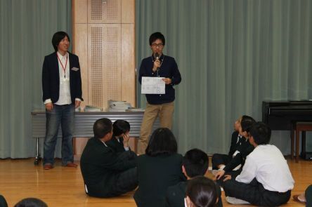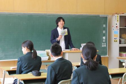 3月18日(水)は二丈中学校にて5限目と6限目の時間を使って、中学2年生と1年生を対象に地元で働く大人たちの歩みを伝える冊子『二丈FUTURE』を使っての授業および配布を行いました。 短い授業でしたが、まずは色で自分を表現するワークショップを行い、将来のことを大学生と楽しく考える時間を持つグループワークの時間を取りました。 大学生に中学生だった頃、今のコト、これからの目標を話してもらい、自分のこと・将来の自分の姿をイメージしたうえで冊子を配布しました。 配った瞬間に身近な地元の大人たちが紹介されていて、興味津々で読んでいました。 生徒たちにとってはとても有意義な時間になったようです。 冊子制作に対して応援、ご支援して頂いた皆様、本当にありがとうございました。 冊子に関しては約1年かけて、右も左もわらかない状態で企画から資金集め、取材、デザインまでで、編集メンバーとやりきったのも、メンバーをはじめ、授業に関わってくれた学生有志、多くの方々のご協力があったからだと思います。 来年度も二丈中学校にて、「地域の歴史や文化」、「生き方」、「エネルギー」、「食育」などをキーワードに生徒達と考える授業を行っていきます。 地元の方をはじめ、このプロジェクトにご協力、応援してくださった皆様、引き続き、糸島「まち×エネ」プロジェクトをよろしくお願いします。