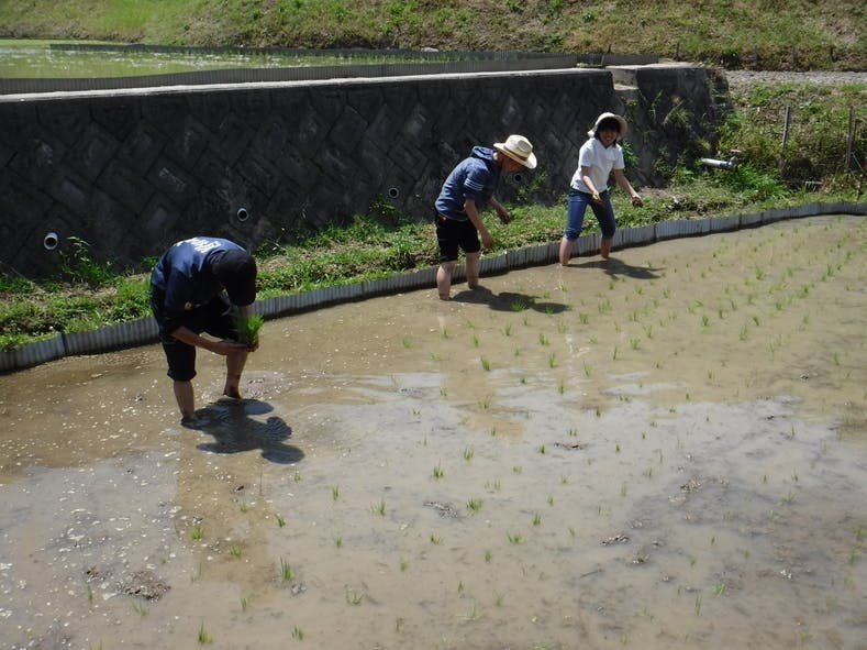 また、棚田の担い手不足、高齢化問題を解消する目的で、平成25年から3年間開講した「大人の棚田塾」で米作りを学んだ塾生が地元農家と共に棚田を守っています。