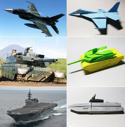 10式戦車、F2戦闘機、護衛艦いずも オリジナル折り紙