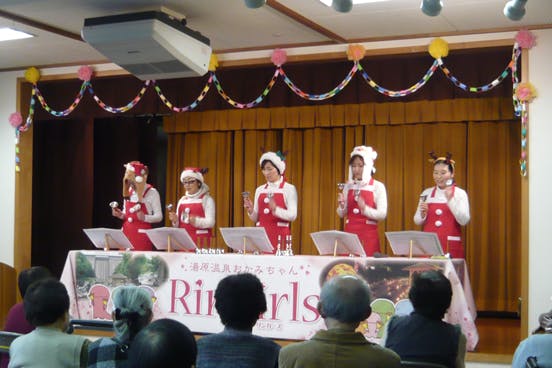 ハンドベルを演奏するときには“湯原温泉おかみちゃんリンガーズ”として近隣の地域はもとより関西方面でも活動をしています。