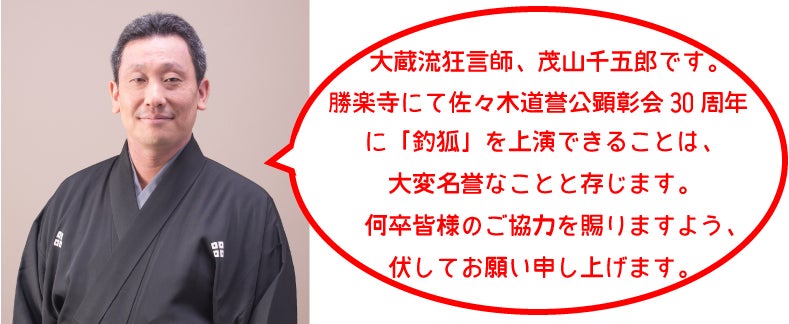 今年のバサラ道誉まつりに「釣狐」を奉納することを日本一流の狂言会・茂山一門の皆様からも賛同をえました。