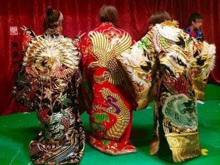 神楽の衣裳は金糸銀糸で一針一針刺繍されており、中には20kgを超えるものもあるんですよ!!
