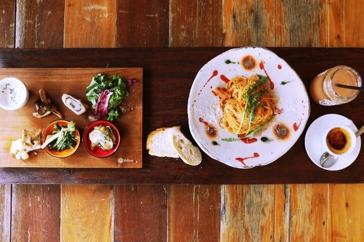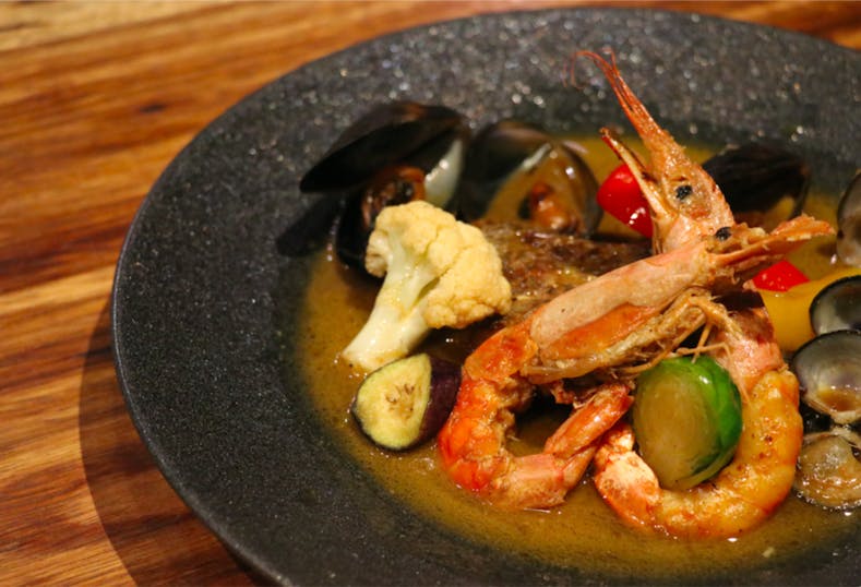 野菜のヘタや皮も余すこと使い、昆布と一緒に4時間以上炊き込んで作るベジブロス(野菜出汁)をベースにしたパスタやアクアパッツァが人気のお店です。