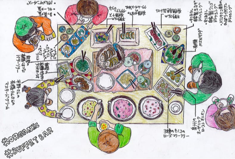 (360°オーガニックブッフェテーブル 絵:西岡希 2017.11.20.作成)