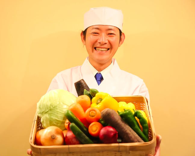 有機無農薬野菜を料理人が自ら収穫して仕入れた、朝採れの新鮮な野菜を積極的にメニューに取り入れています。