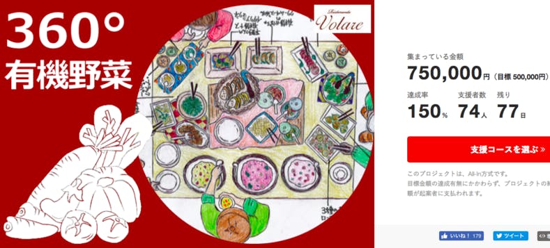 2017/12/13 20:37【史上最速!9時間で50万円達成!】 *FAAVO大阪の過去141件のクラウドファンディングプロジェクトにおける最速達成記録 こんばんは。 最速達成の男、 Volare店長の村田です!笑 渾身の「Thank you」ショットwww 【現在150%達成】 これも一重に、支えてくださる皆様の ご支援のおかげです。 本当にありがとうございます。 現在、運営者のFAAVO大阪の皆様と 次のゴールに向けて打ち合わせを重ねているところです!! 【近日公開!】 既に当初の目標は達成していますが、 地元・吹田の農家や吹田市の協力も仰ぎ、 子どもたちに野菜本来の味、 栄養など素晴らしさを伝え、 未来に紡いでいく食育や環境学習など 新たな目標へ向かってプロジェクト を続伸させたいと考えています。 *営業と学校の合間を縫っての 挑戦なので、応援していただいた方に 直接ご連絡が返せておりませんが、 感謝の気持ちでいっぱいです。 後ほどお返しさせていただきます。 引き続き、どうぞよろしくお願いします(>人<;) もっと見る