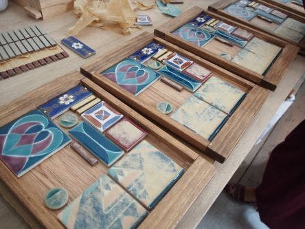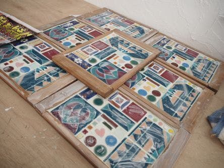 レトロなタイルを使ったタイルトレイ。インテリアとして、またはお子様の食事時や、来客用のカフェトレイにもお使いできますよ!