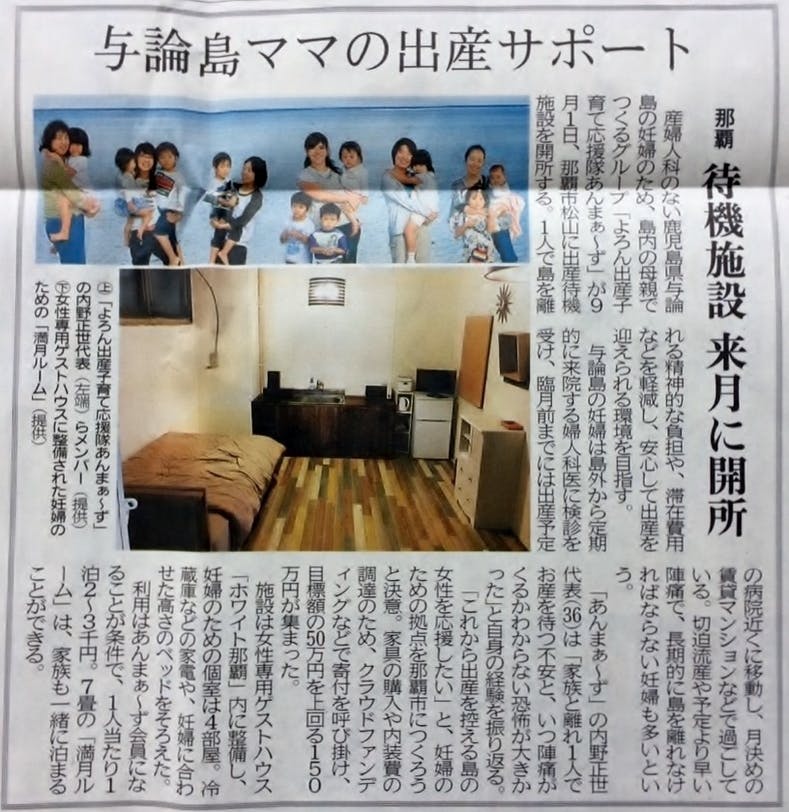 「産婦人科がない与論島の妊婦が安心してお産を待つ施設を那覇に作りたい!!」プロジェクトはこちら(リンク先)をぜひご覧いただければと思います。