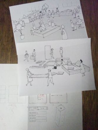 木材、しかもヒノキというやわらかい樹種を使っての家具ということで、村の大工さんにいろいろ教えていただきながら設計中です。