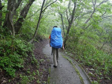 雨が降っているため、滑りやすい道を注意しながら下っていきます。