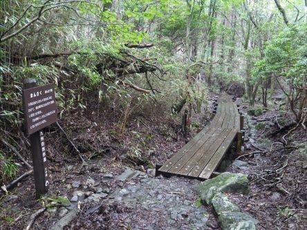 ここから長者原まではやまなみハイウェイがありますが、九州自然歩道は、その裏を通る自然道へ。