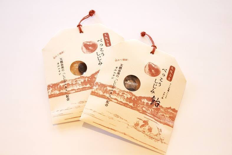 大阪市漁協協同組合が大阪湾で漁獲するシジミもヤマトシジミですが、シジミの殻は生息する底質によって色が変わり、泥が多いと黒っぽくなりますが、砂が多いと茶色となります。その為大阪では、まるでべっ甲のように輝いて見えることから「べっ甲シジミ」の愛称で親しまれて来ました。当組合で漁獲された「べっこうしじみ」は選別機にかけられ、スーパーなどに出荷され、大粒のものは料亭へも仕入れられています。使った飴と、シジミ汁缶を作りました。天然由来のオルニチンがたっぷり入っています。