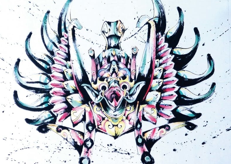 奈良県出身の芸術家。2014年から活動を開始。それまでは主に造形作品を制作していたが、2016年から墨絵始める。「和」を主なテーマに様々な作品を制作。