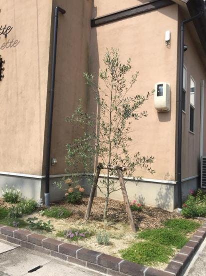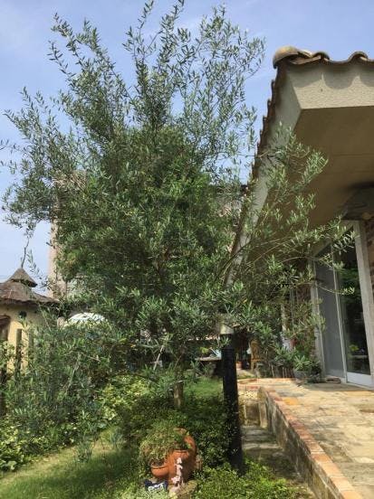 ▲津山市内でぐんぐん育っているオリーブの木。(N様邸)