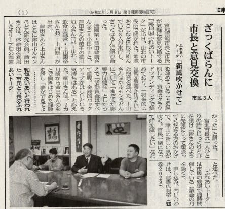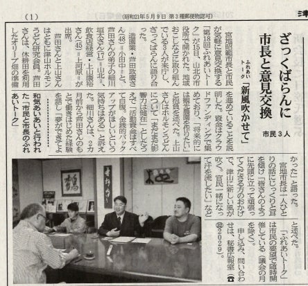 7月17日(金)津山朝日新聞夕刊1面に市長との意見交換の模様が掲載されました!