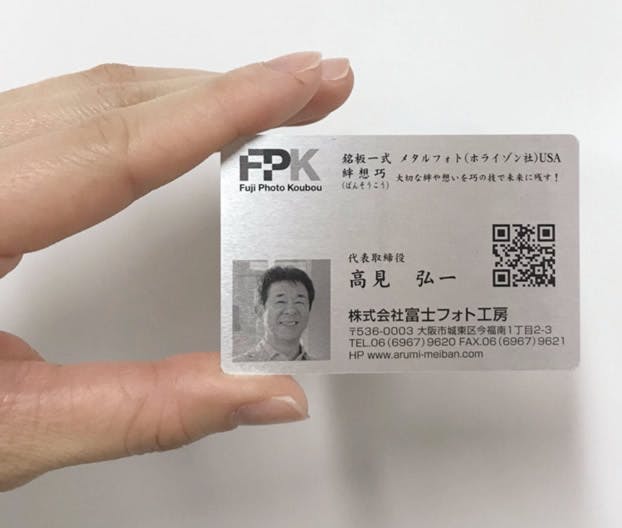 私、高見弘一は日本には数少ない“メタルフォト銘板”専門の「銘板屋さん」です。
