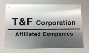 弊社製造の銘板はおもに工業用で、機械に貼って社名や機械名を表示する。