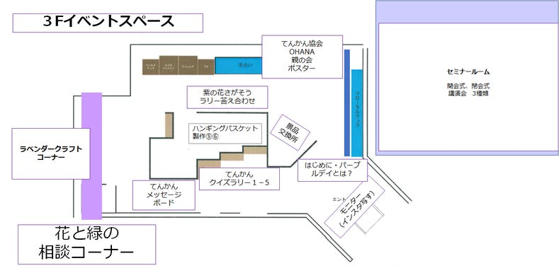 咲くやこの花館に咲く紫のお花のフラワーラリーや、てんかんの知識が身につくクイズイベントも企画しています。