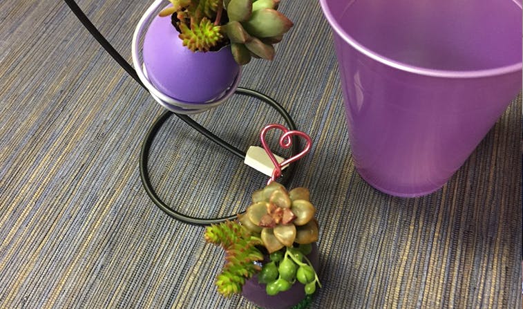 日本ハンギングバスケット協会の皆様が作ってくだった、パープルデー・オリジナルフラワークラフトの試作品です。こうした「てんかん」とは関わりのない企画の中で、楽しみながら「てんかん」についても知っていただけることは、とてもすてきな啓発の形です。