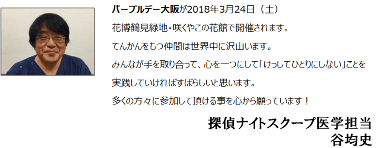 大阪のみなさまにはなじみの深い「探偵ナイトスクープ」で医学担当をされている谷先生からもメッセージをいただきました。ありがとうございます!