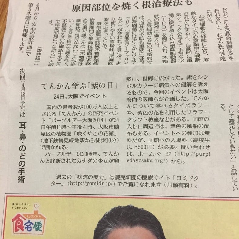 近畿地方の方には昔からおなじみ、ABCラジオの名物番組「おはようパーソナリティ 道上洋三です」にて、2月15日朝8時ごろから、パープルデー大阪の役員でもありますプール学院大学の永井利三郎先生がパープルデー大阪をご紹介くださいます。