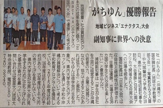 ▲沖縄県の浦崎副知事への表敬訪問の様子(沖縄タイムス社経済面2015年8月19日掲載)