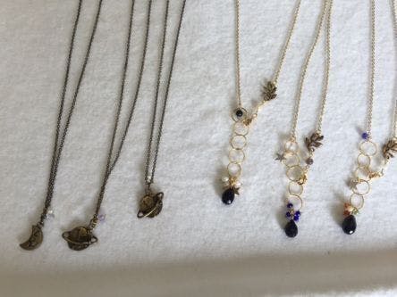 只今、星や月、宇宙をテーマにペンダントやピアスなどの作品を作ってくれています。中でも、ラブラドライトと言う天然石で作ったペンダント、この石は宇宙からのメッセージを伝える石と言われているそうで、持ち主の夢や希望を叶えてくれるらしいですよ。ぜひ、当日は会場でGETして、皆さん夢や希望を叶えましょう!