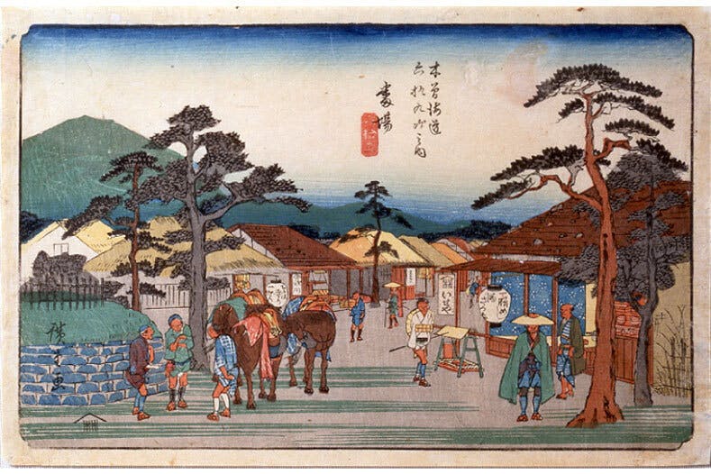 (歌川広重「木曽海道六拾九次之内 番場」中山道広重美術館所蔵)