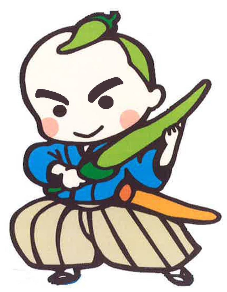 ▲誕生した青唐辛子の新キャラクター青兵衛(あおべえ)だよ。マゲや刀が青唐辛子モチーフになっているのが特徴なんだ。