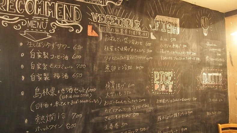 黒板に書かれたメニュー。もちろん島根県地酒セットもあります。