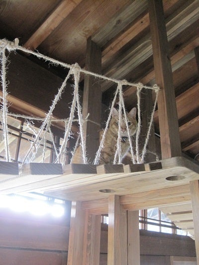が、しばらくすると猫スペースをうろうろ。あっち行ったり、こっち行ったり。