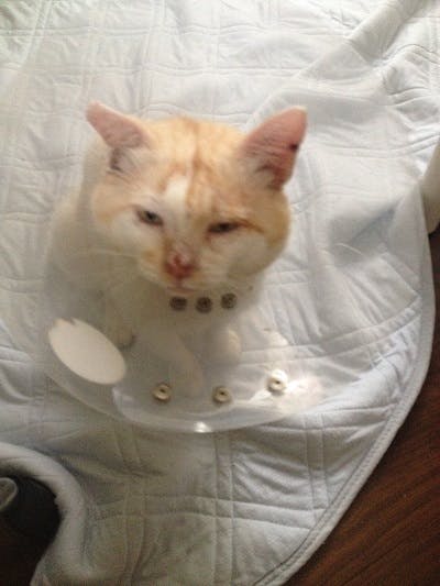 掻きむしらないように、エリザベスカラーの日々が続きました。