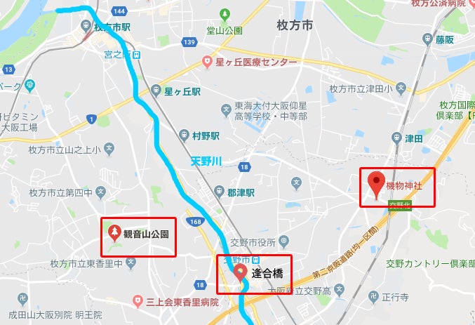 枚方には古くから七夕伝説が存在します。地元に伝わる七夕伝説では『交野市の織物神社に祀られている織姫と、枚方市の観音山公園にある巨石「牽牛石」が、年に1度(7月7日)に天の川(天野川)に架かる逢合橋で出会い、逢瀬を楽しむ』という。