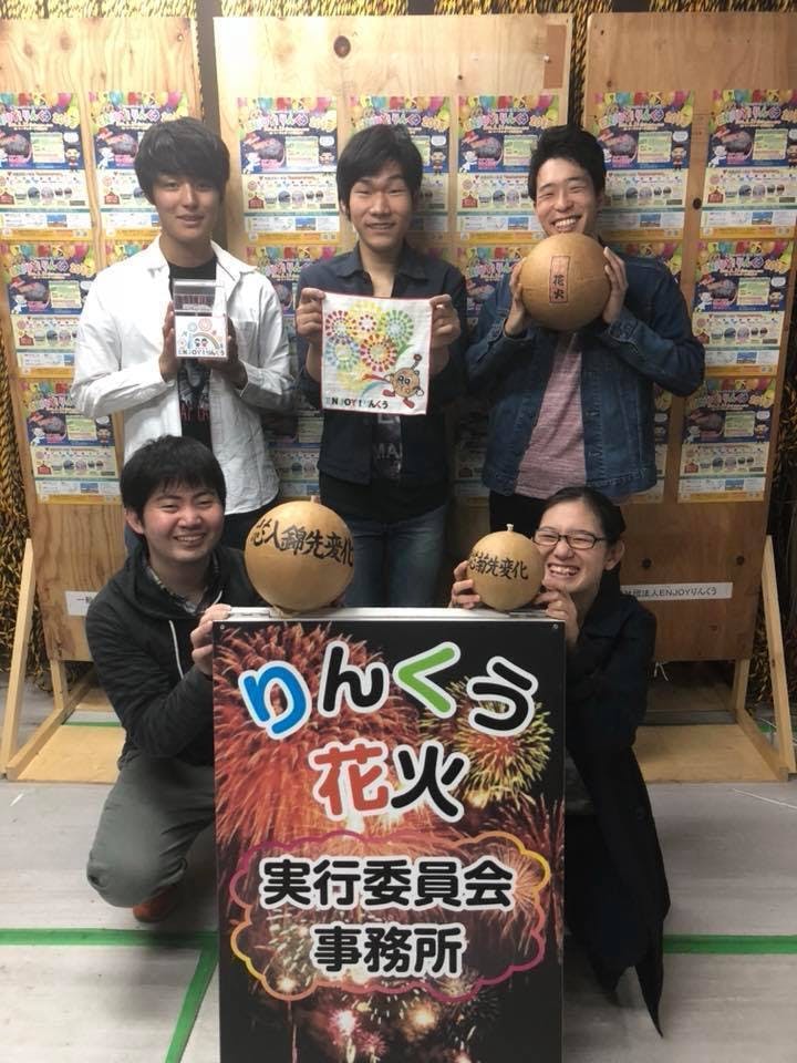 ENJOY!りんくうは「こどもに夢を」「りんくうに活力を」「観光の発展を」の3つの理念によって運営されています。実行委員は大学生、社会人で組織されており、全員がボランティアで運営に関わっています。当花火大会は個人協賛、企業協賛に支えられており、立ち上げ当初は実行委員が街頭募金や企業協賛回りを行ってきました。そして近年は泉佐野市のふるさと納税により毎年開催することが出来ています。花火大会当日にはさらに400人のボランティアの方々にお手伝いいただき、開催することが出来ています。一方で花火大会の準備には1年前から取り掛かる必要があり、他に本業を持つ実行委員もメンバーが減りつつあり、その結果個人協賛や企業協賛が減ってきています。今は泉佐野市の協力のおかげで、ふるさと納税によって開催ができていますが、もしふるさと納税がなくなると開催が出来なくなってしまいます。大会の運営費を個人協賛、企業協賛中心にシフトするためにも、優待スペースの価値を高め、魅力を広げる必要があります。若手メンバーが中心となって、りんくう花火存続をかけて、メインのステージ企画を大々的に開催したいと考えています。