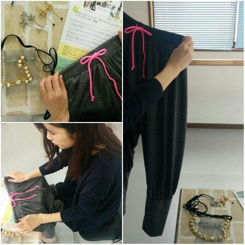 ウエストを70前後まで対応できるように改良し、膝下にゴムを縫込み、伸縮性を出すこと