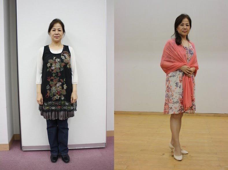 ▽日頃、落ち着いた色合いのお洋服を好まれていたプラチナモデルさんが大変身!